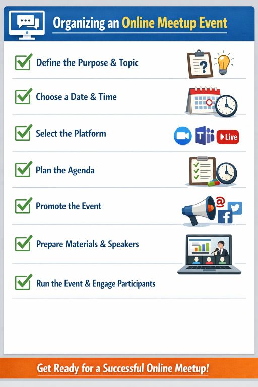Screenshot Prompt: Checklist style screenshot showing the step-by-step process of organizing an online meetup event.